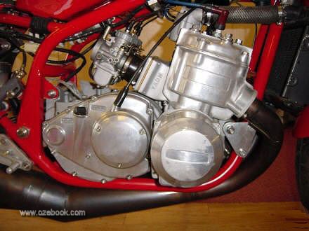 It runs premix, and has had all excess weight removed, for example, it has no starter motor, or kickstart, you run and bump it.