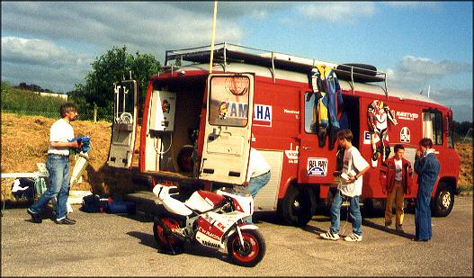 This is the crew and Team bus, prepairing for a race in Denmark.