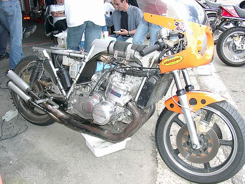Stainless steel parts: 3into1 exhaust, light shrouds front and rear, air filter covers, breaklines, many nuts, bolts and spacers. Most of these parts are made by my dad. JMC swingarm, Hagon Shocks, Front fork stabiliser from Micron, tapered roller bearings, K&N air filters, Roca rear sets, Akront rims with SS spokes, Special paint by Roland Meerman from Ridderkerk.
