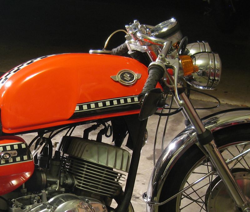 One final note, for several years I have been an member of an active web forum that focus almost exclusively on the vintage Suzuki Street 2-strokes from the 1960's and 70's. It is called the Sundial Motorsports Suzuki 2-Stroke Message Board, and I signed on there as Fang. These good natured gentlemen possess a voluminous body of knowledge regarding these great old bikes. They help each other find parts, freely share knowledge, and represent a thriving community of vintage Suzuki 2-stroke owners. This community makes it easy to own and maintain these bikes, and I would strongly encourage the winning bidder or potential winning bidder to remember them as a valuable resource for all your old 2-stroke Suzuki needs. I am confident that the buyer of my cafe racer will be congratulated and well received there.