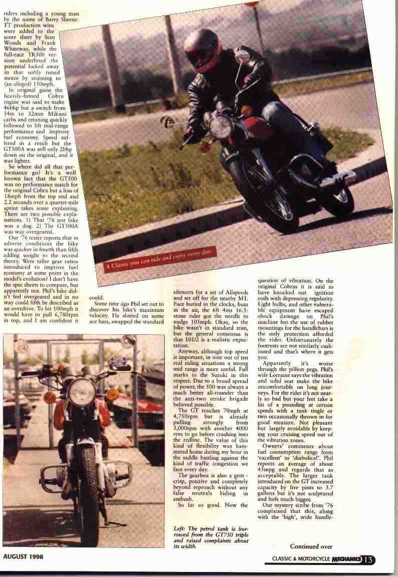 Road test report from Classic and Motorcycle Mechanics Aug 98 supplied by Craig