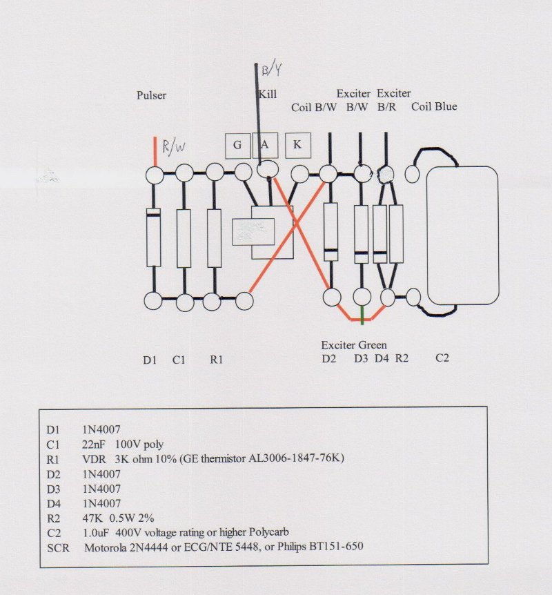 The above circuit replaces the area in the box labelled 'CDI unit' in