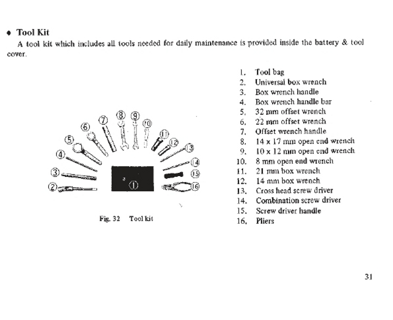 K models (to be confirmed) included a box wrench having a