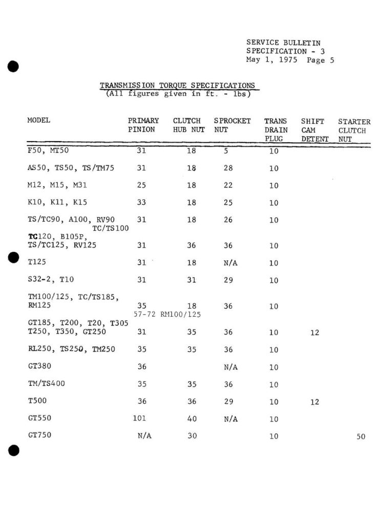 Torque Specifications – Service Bulletin