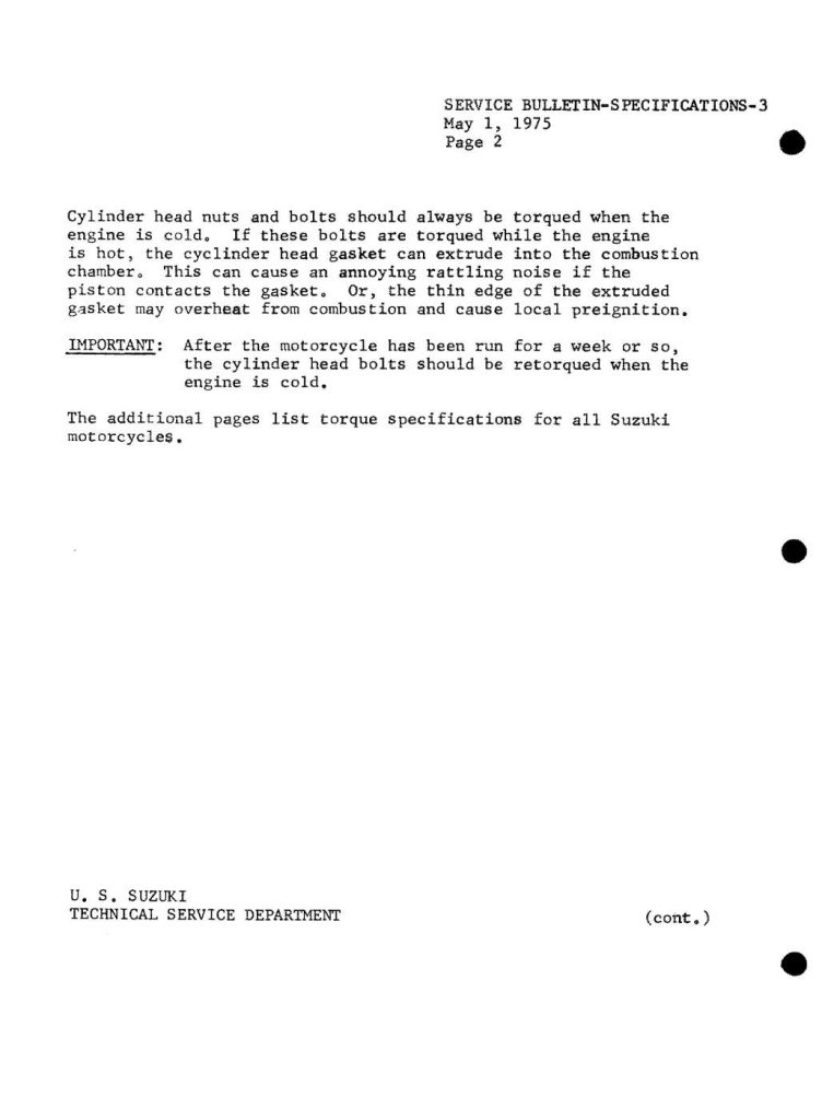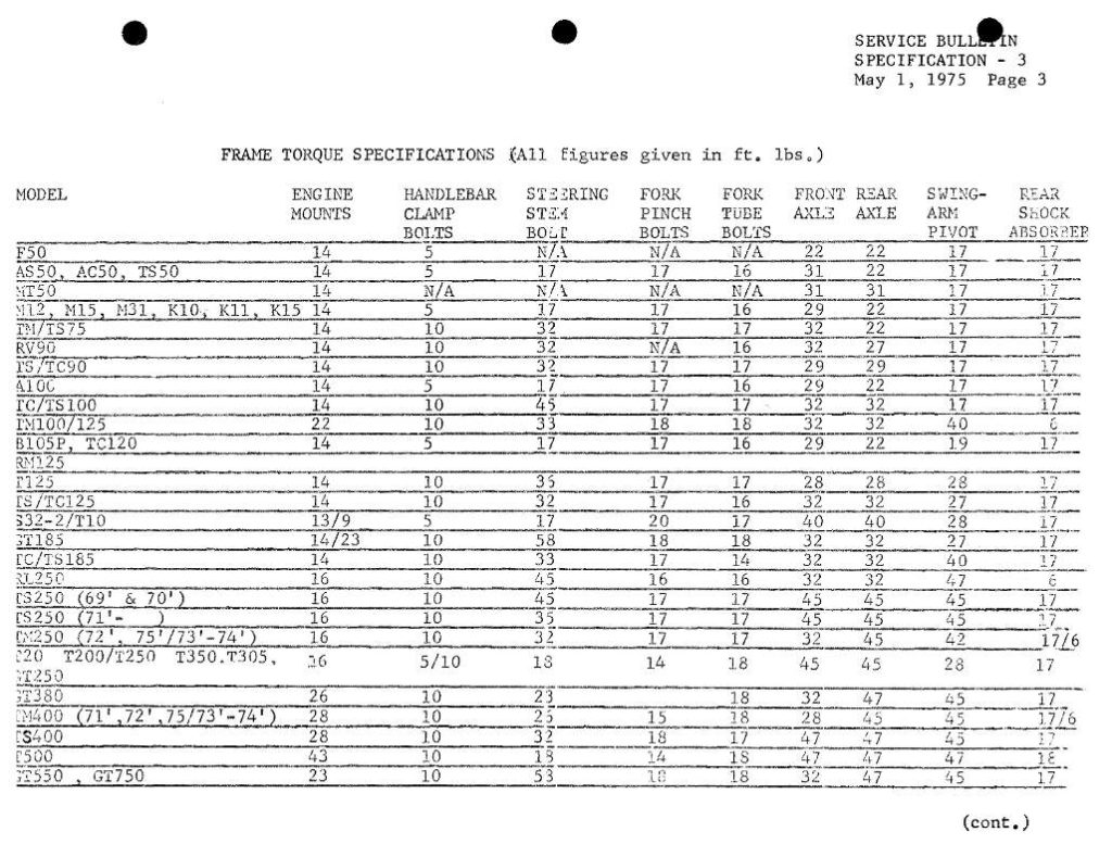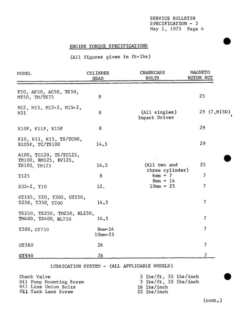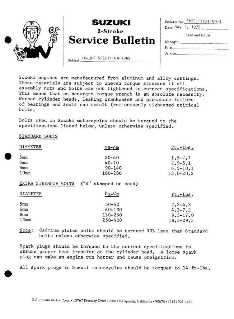 Torque Specifications – Service Bulletin