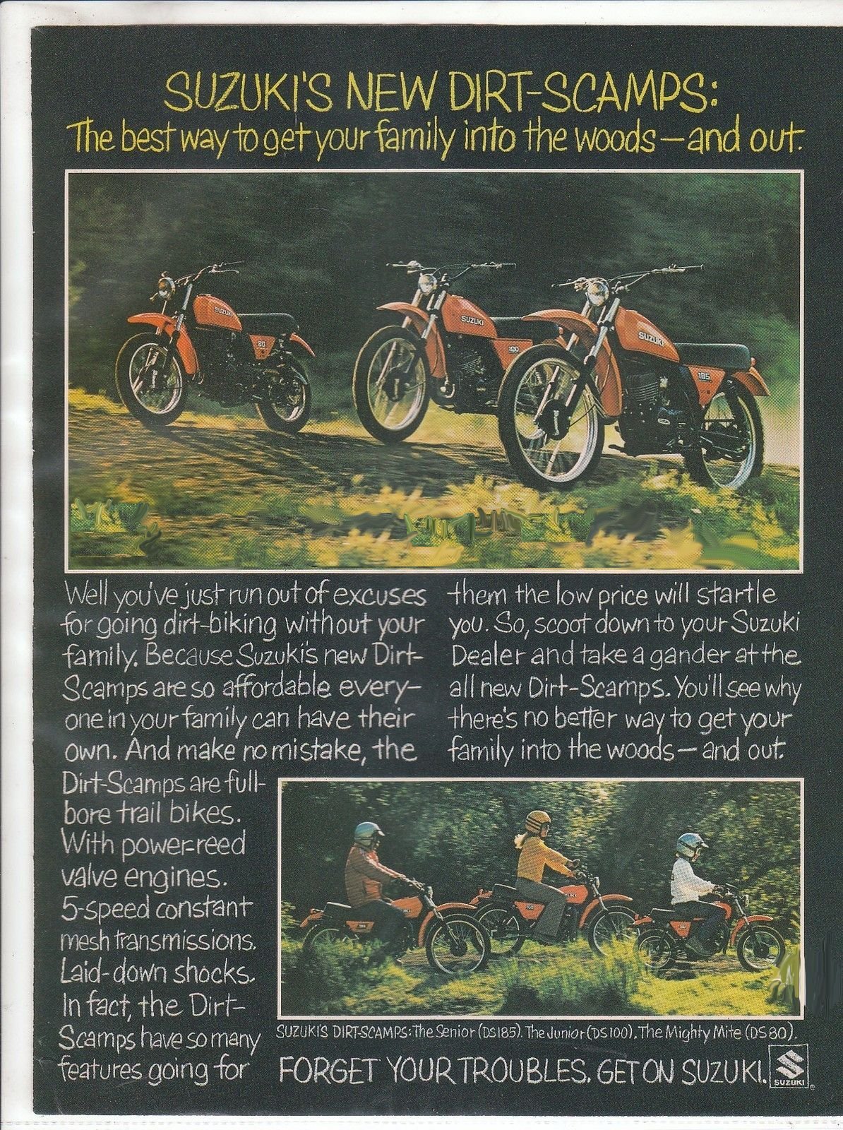 Wheel Alignment Pages From SerBulletin General 10-18 Related Articles Suzuki DS lineup from advert for 1977 Suzuki road lineup from 1974 Suzuki RL250 from 1974