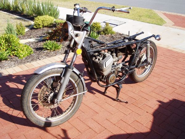 The motor in the bike i had, had a bent conrod, due to hydraulic lock. The crank had filled with oil after sitting for 12 months. I stripped the whole bike with all nuts and bolts going into labeled ziplock bags (there’s a tip you can have for free). I had to use a carefull mix of precision work and extreme violence with a hammer and a block of wood to remove the cylinder with the bent conrod. Now has anyone out there tried to located a conrod for a T500. Well you might know how difficult that can be unless you have squillions of dollars, you will end up with a crank worth more than the whole bike. A guy in Germany can offer some new ones, and someone in Sydney said they might have one. Still i manage to acquire another bike with a proper GT motor in it so hopefully my troubles would be over! here is a photo of the beautiful machine.