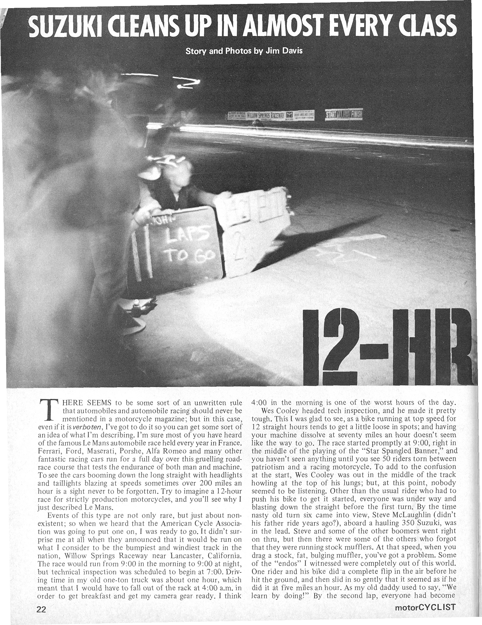 Suzuki sweeps the field in 1968 12 Hour Endurance Race – Willow Springs