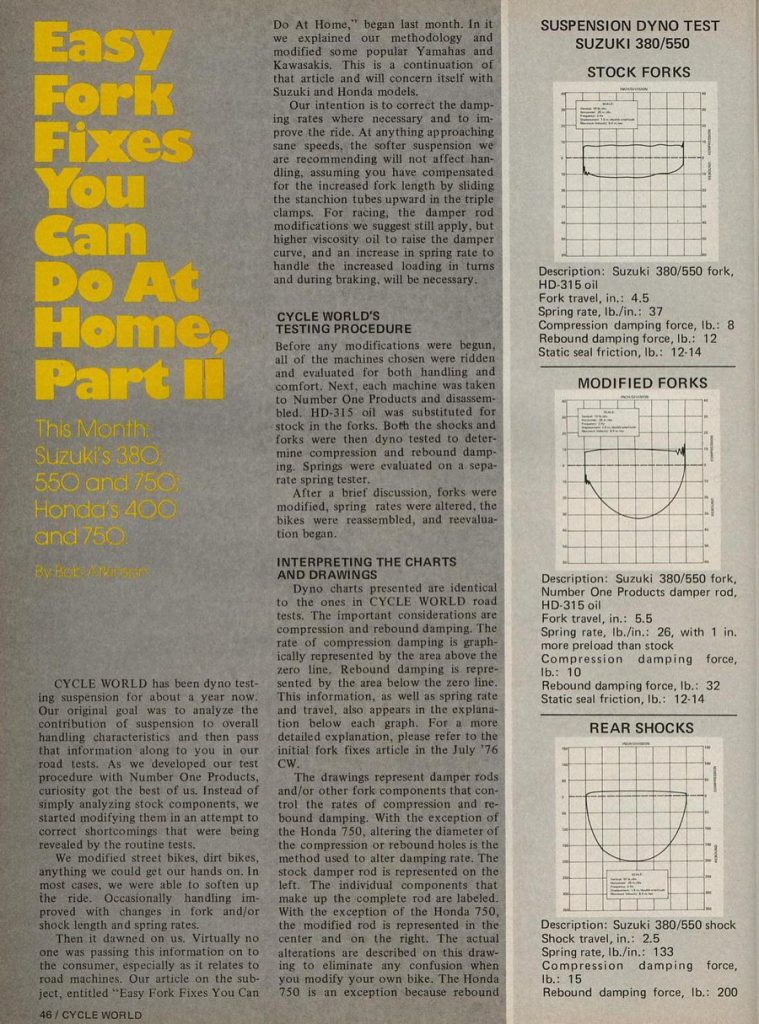 Fork Fix – GT380/500/550/750 Fork fix review kindly prepared by Jim Winters: Loading... Taking too long? Reload document | Open in new tab Related Articles Suzuki T500J 1972 Owner’s Manual Click the following link to view: Suzuki T500J Owner’s Manual Piston specifications – Suzuki T500/GT500 & GT750 Suzuki GT750 – Modification to crankshaft – 1975 – Technical Bulletin