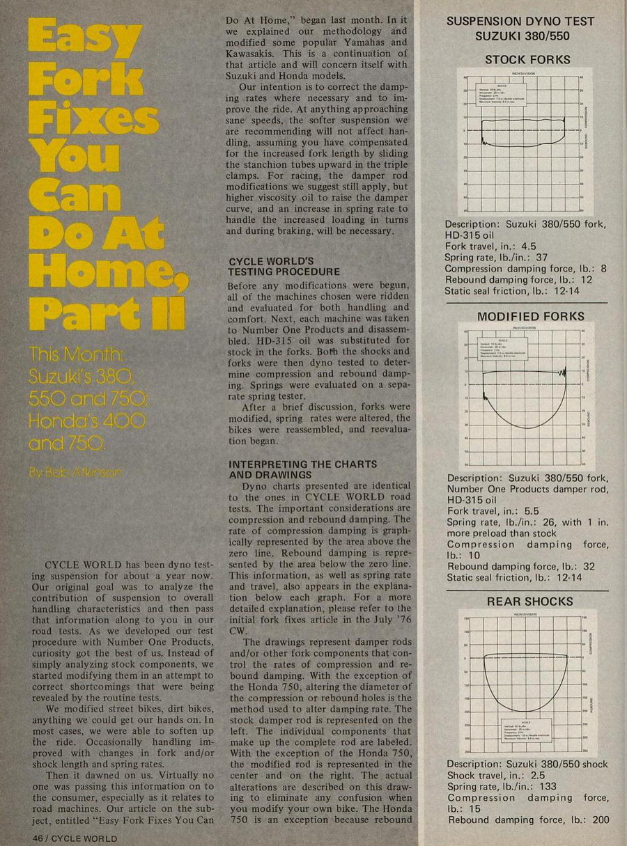 In GT380, GT550, GT750, Front forks, Suzuki Service Bulletins