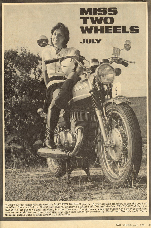 Miss Two Wheels – Australia – Suzuki T500R – July 1971