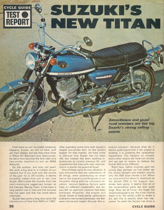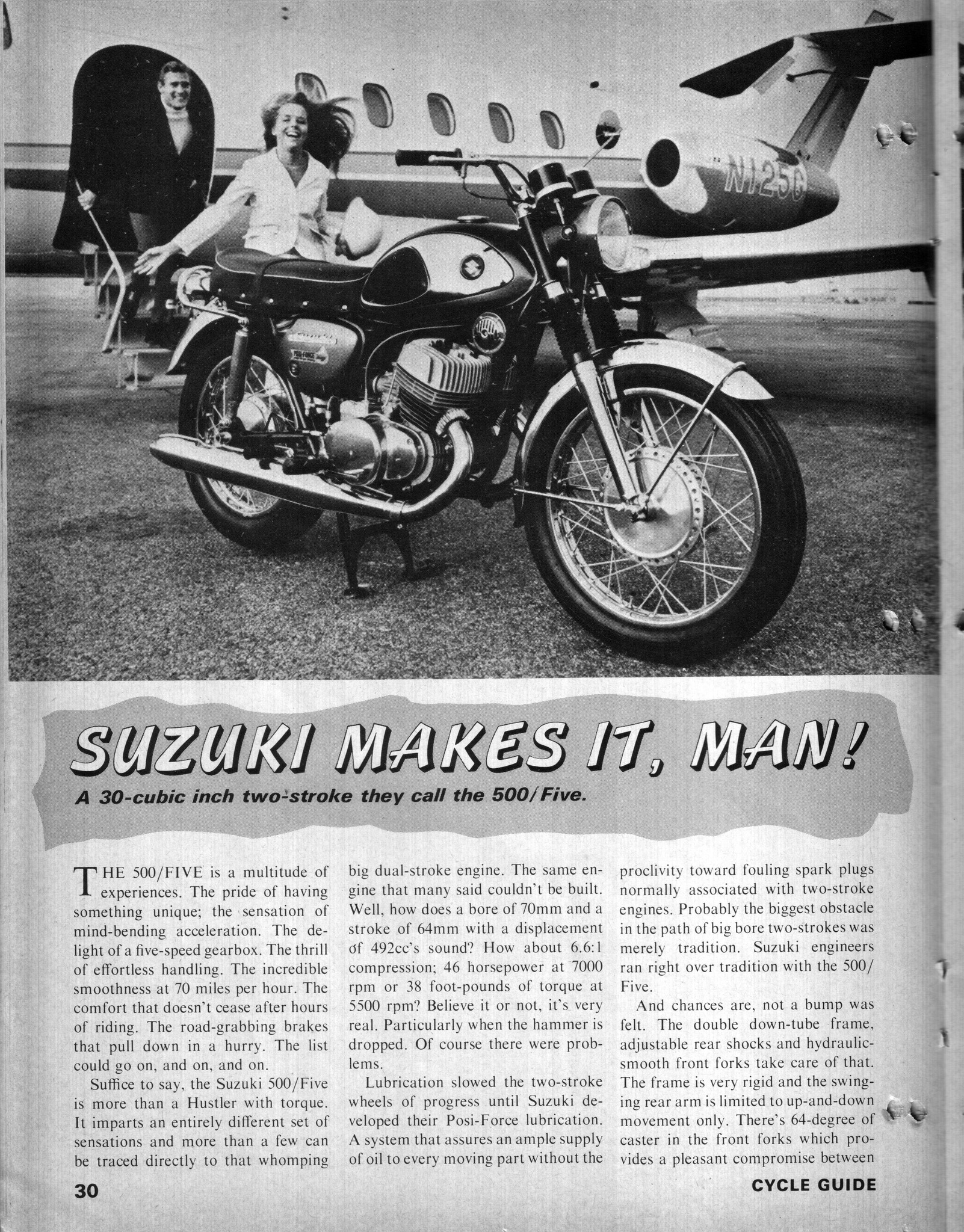 Suzuki T500 Cobra Road Test – Cycle Guide – January 1968 – Short wheelbase prototype