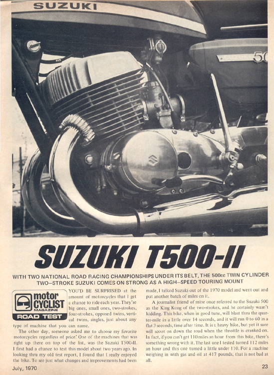 Suzuki T500III Road Test – Motorcyclist – July 1970