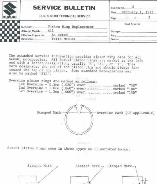 Piston Ring Replacement – Suzuki Service Bulletin: 2-73