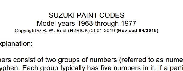Suzuki Paint codes explained April 5, 2023 | No Comments | muzza | 5:59 am Loading... Taking too long? Reload document | Open in new tab
