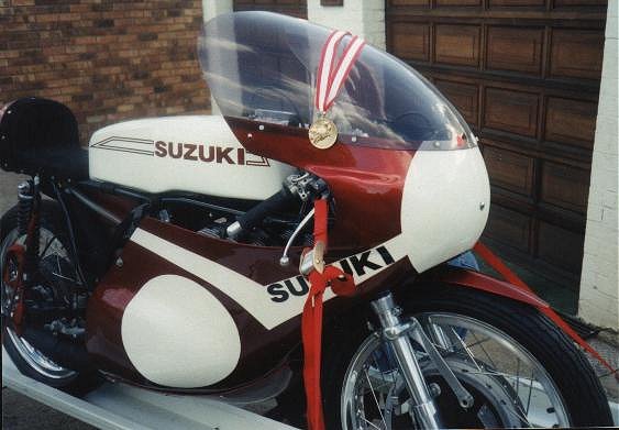 I had never even sat on a racing two stroke, never mind having raced one, but I loved the aircooled TR, and rode it as much as I could during open practice. The Donnybrooke Circuit in Salisbury was brand new and was very abrasive, and I used up the only set of slick tyros we had before the official qualifying practice, so we fitted a set of Dunlop TT100 tyres from van Breda’s production racing Suzuki GT750. To tell the truth I couldn’t really feel the difference between them and the racing slicks, and qualified third behind Les On the water-cooled six speed TR 500 and the Rhodesian Champion at the time, Geoff Downing, on a factory Kawasaki H1R 500. In the race itself I made a complete mess of the start, which was a push start, and by the time the bike fired I was almost a full lap behind. Anyway I had a wonderful time making my way through the field, and finished about fourth or fifth. Les won, and Downing was second. All the local riders were really interested in our two Suzuki’s, and regarded them as factory exotica! About a year later I received a phone call from one of the Rhodesian riders, Roy Hill, who wanted to know if I would find out from van Breda if the aircooled TR was for sale. Les was just to glad to be able to sell it, and a deal was agreed. The big problem was how to get the bike into Rhodesia, which was subject to trade sanctions from the West etc, and also had a very strict import policy. As the country was technically at war, luxury imports were completely banned. I was competing in the South African national motocross championship at the time, so I took it, packed in the back of a caravan, as spare parts for a Honda CR250 Elsinore MX bike. In order to fit the two bikes into the caravan and to convince the customs that I had only one bike in the back I stripped the Elsinore completely and packed it into the caravan cupboards. I them took the Suzuki decals off the TR and replaced them with the Elsinore-Honda winged decal! This plan worked completely, and the buyer Roy Hill, got his TR500. A footnote to this story is that this TR500 has now gone a full circle and has arrived back in SA, I now own the water-cooled TR500, and Roy Hill now lives in South Africa two blocks away from me in a town called Benoni.