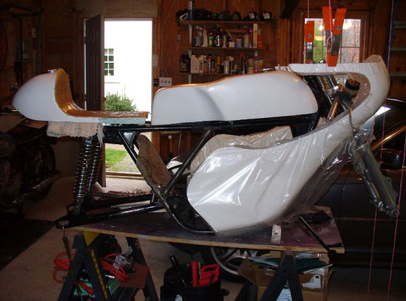 Side view with the tank, seat and fairing. I’m in the process of figuring out how to mount the fairing in the right place. This was not an easy job!!