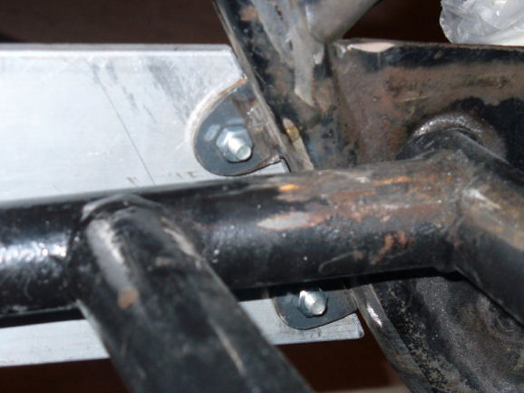 I have also made up the front seat mount made out of aluminum flat bar, bent and bolted into the existing frame mounts (I think originally used for the seat grab handle).
