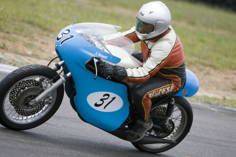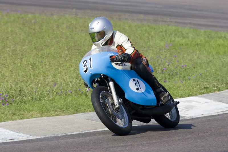 No 77 Les van Breda on his Suzuki TR 750, no 31, Clive Strugnell on his Suzuki XR05 , both a Zwartkops raceway, 2nd Feb 2008