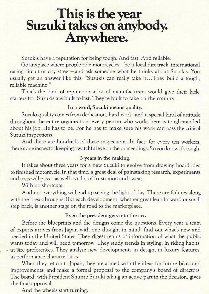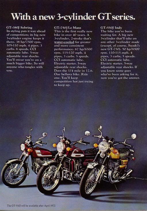 1972 Suzuki line-up April 27, 2023 | No Comments | muzza | 12:25 am Tags: TM250, TM400, GT380, GT550, GT750, T500, T350, T250, 1972, TS400, TS 250, TS185