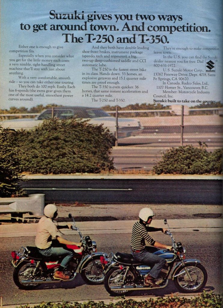 Suzuki T250J Hustler and T350J Rebel lined-up for 1972 Posted on April 27, 2023 by muzza Share: Related Articles Willie Hardin & US Suzuki – Photo Gallery 2 Joe Eastmure and the controversial 1972 Castrol 6 Hour Production Race 1972 Suzuki line-up 1969 Suzi line-up
