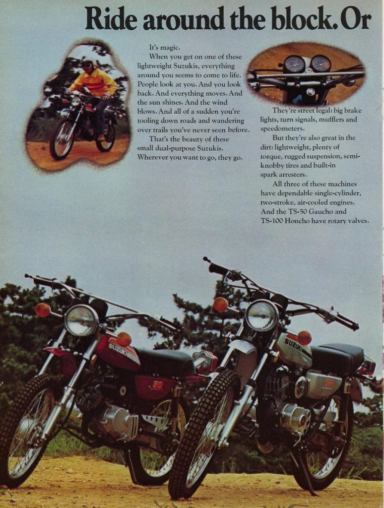 Suzuki TS and RV lineup from 1974 April 27, 2023 | No Comments | muzza | 6:30 am Tags: TS250, TS400, 1974
