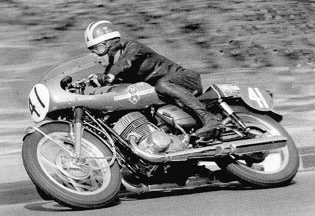 In 1969 Suzuki GB let me have the use of one of the very rare and, up till then, relatively unsuccessful TR50 Racers to campaign the British Championship for 50cc machines. During the following two seasons I thrashed this tiny bike unmercifully and either won or finished 2nd in every race except the '69 Ulster Grand Prix were I finished in 3rd place behind Angel Nieto and Van-de-Vries. Sadly I only manage the runner-up prize in the 1969 British Championship behind George Ashton's Garelli. The following year, after a season-long battle with Arthur Lawn on his Honda, I was delighted to add an ACU Gold Star to my Trophy chest by winning the last 50cc British Championship. I might add that during both seasons this wonderful little bike needed only 4 sets of piston rings and 2 small-end needle bearings - making this the most reliable and successful racing machine I have ever ridden.